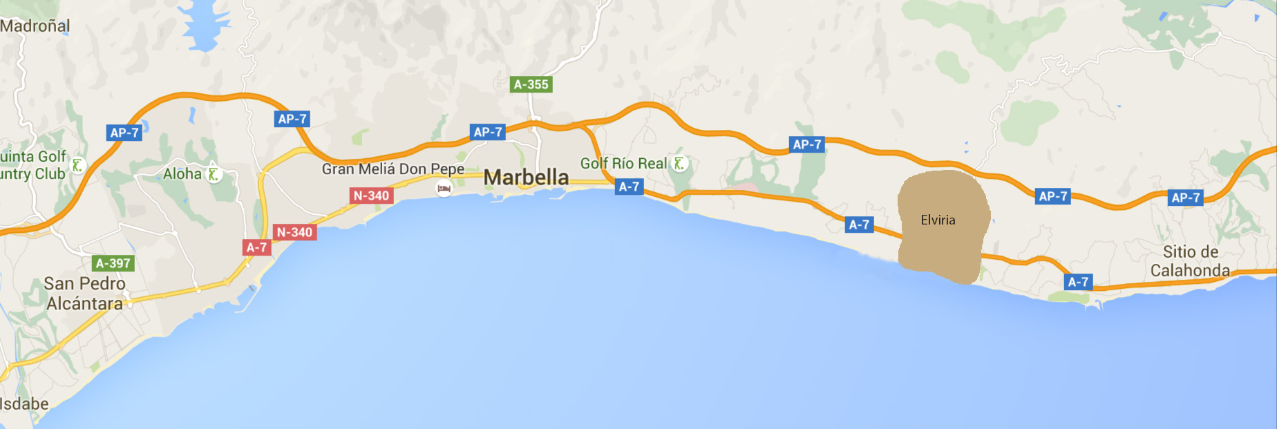 Le centre commercial de Elviria est situé au bord de la M340, du côté terre. Vous y trouverez deux supermarchés, de nombreux magasins, des banques, des cafés et des restaurants. Vous apercevrez, dispersées sur les collines de Elviria, de belles maisons et des villas, ainsi que quelques rares complexes d'appartements. Les amateurs de golf apprécient eux aussi beaucoup Elviria - car ils profitent ici de deux terrains de golf sur le pas de leur porte - Santa Maria, un parcours de golf 18 trous très prisé à l'est de Elviria et Greenlife, un Par 3 bien entretenu pour une rapide partie de golf.