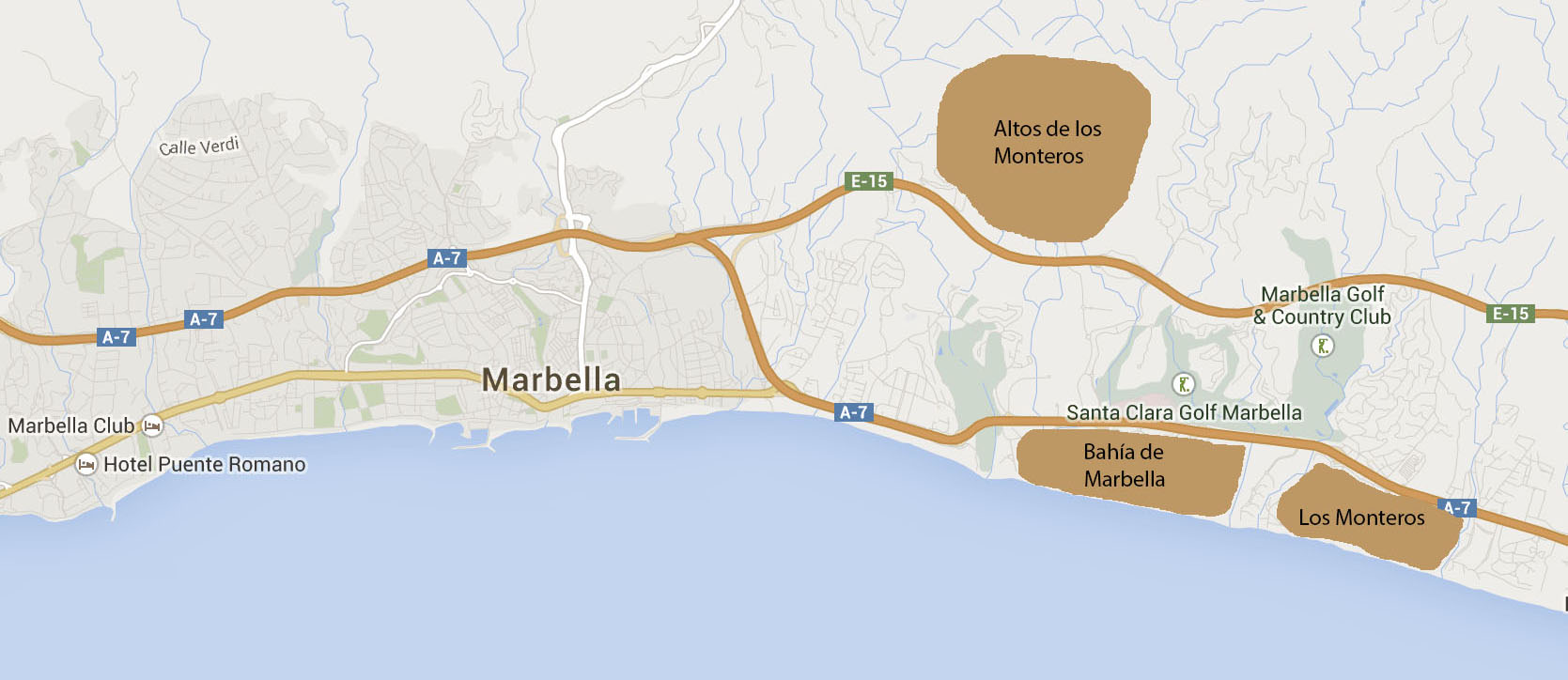 En bordure de l'un des terrains de golf de Marbella qui jouissent de la plus longue tradition, l'urbanisation est située à seulement cinq minutes en voiture du centre ville. Elle est en grande partie composée de complexes d'appartements élégants d'une hauteur maximum de trois étages. La plupart de ces immmeubles ont été édifiés sur un terrain en pente, ce qui permet une vue dégagée sur le terrain de golf qui s'étend dans la vallée du fleuve Rio Real. Avec ses groupes de pins, de palmiers, d'oliviers, de cyprès et d'autres espèces méditerranéennes, c'est l'un des terrains les plus pittoresques de la Costa del Sol. La fédération nationale de golf le décrit comme un terrain aux multiples points d'intérêts et affichant l'un des meilleurs design de toute l'Espagne. Les greens bordent le Rio Real sur les deux berges jusqu'à son embouchure. Derrière les dernières maisons de la cité aux dimensions très humaines, des collines à leur état naturel qui montent jusqu'à la Sierra Blanca, la chaîne montagneuse protectrice du littoral. Un peu plus à l'est, à quelques centaines de mètres de là, se trouvent deux autres terrains de golf.
